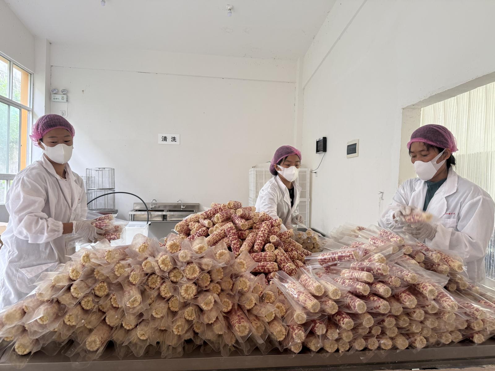 玉米加工厂内同样是一片繁忙景象。工人们手法娴熟,将新鲜采摘的玉米依次进行去皮、分拣、蒸煮、真空包装等工序。这些精心加工的傈僳糯玉米口感软糯香甜,营养丰富,即将销往昆明等市场,深受消费者青睐。在采收加工高峰期,工厂吸纳了23名当地村民就业,月均工资达3000元。