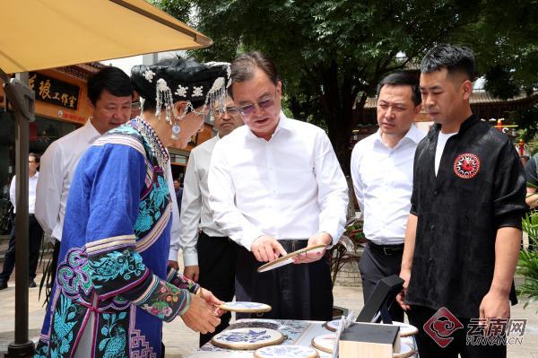 王宁在罗婺彝绣街参观彝绣展示。记者 雷桐苏 摄