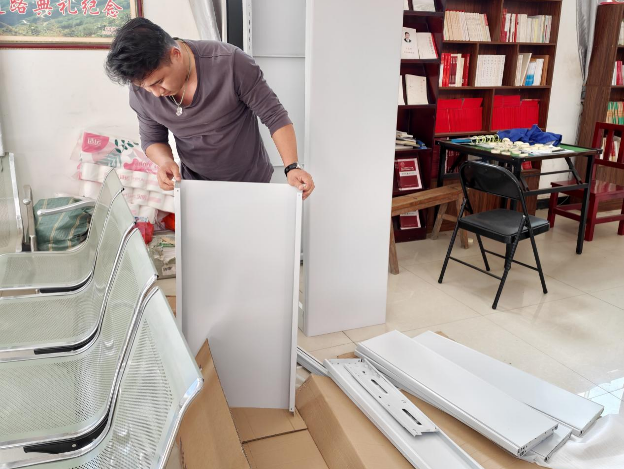 本次补充更新实现全域覆盖,累计配送图书5855册、书架 92 个。其中 60 个行政村每个书屋配备图书 90 册,5个社区每个书屋配备图书 91 册;书架包含双架一列两组 40 个、单架一列一组 52 个,精准匹配不同书屋的空间需求。工作组严格按照需求清单开展点对点服务,从书架组装稳固性检查到图书分类上架,全程严把质量关,确保物资到位、功能完善。