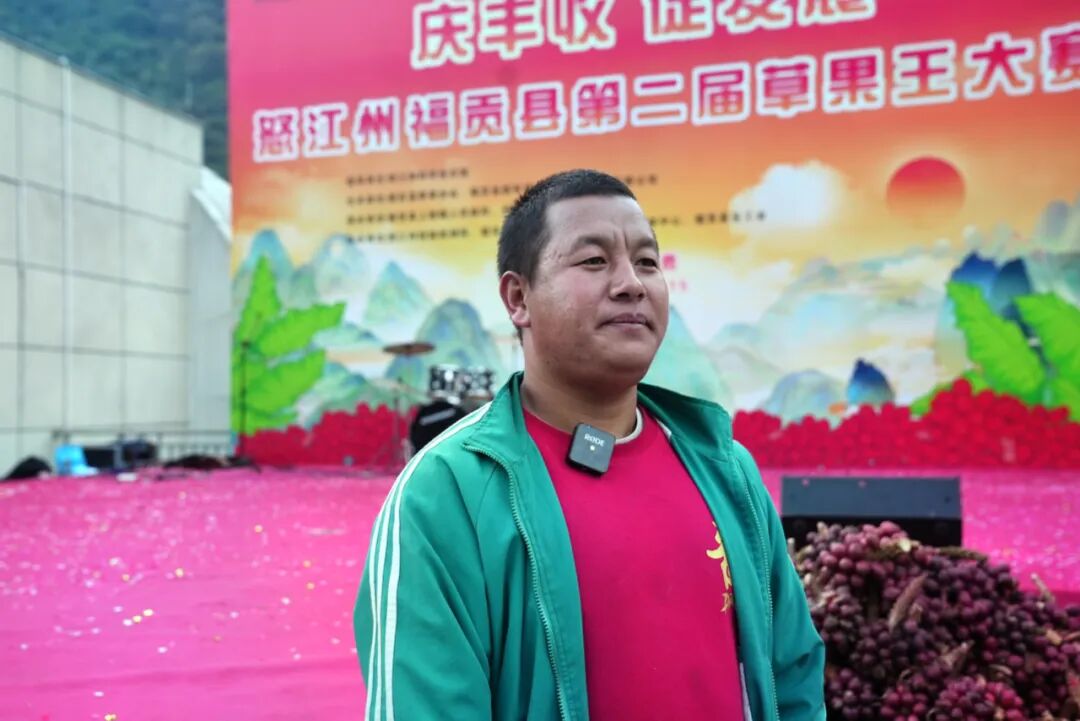 草果王大赛一等奖种植户 坡四华:我叫坡四华,我是匹河(怒族)乡瓦娃村人,今天参加草果王大赛拿到了第一名太开心啦,(我希望以后我的草果)越种越好。