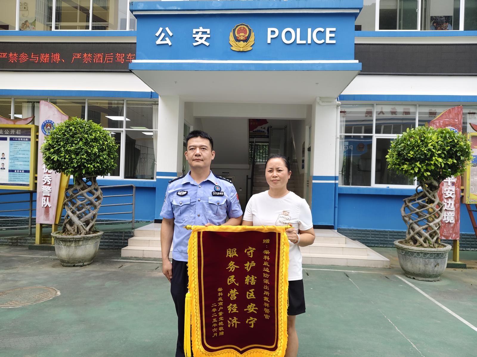 “多亏了派出所的同志,我的小店才能安安稳稳做生意!”送来印有“守护辖区安宁 服务民营经济”锦旗的,正是辖区小吃店店主董女士。她紧握民警的手久久不愿松开,眼眶泛红地回忆起那段暖心的往事。