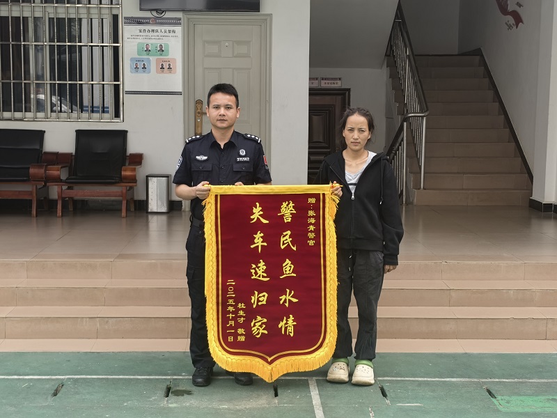 一面写有“敬业正直 为民解忧”的警旗,承载着木先生夫妇对户籍民警的由衷谢意。这份跨越千里的认可,背后是民警急群众所急、解群众所难的贴心服务。