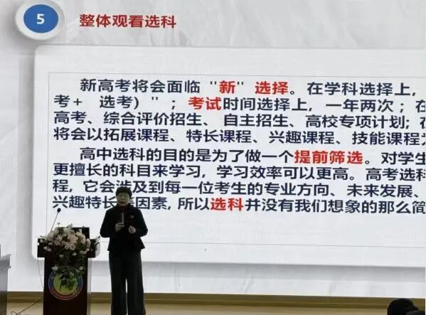 讲座中,张春梅老师围绕新高考“3+1+2”选考模式,系统解读了选考组合规则、赋分机制及高考录取对应要求,着重强调选课与未来专业报考的紧密关联性,帮助学生建立“选课即规划未来”的认知。同时,她结合福贡县第一中学实际,详细介绍了学校选课走班的具体实施方案,涵盖课程设置、班级组织、教学管理、考勤考核等关键环节,并明确了选课操作流程与重要时间节点,为学生和家长厘清实施路径。