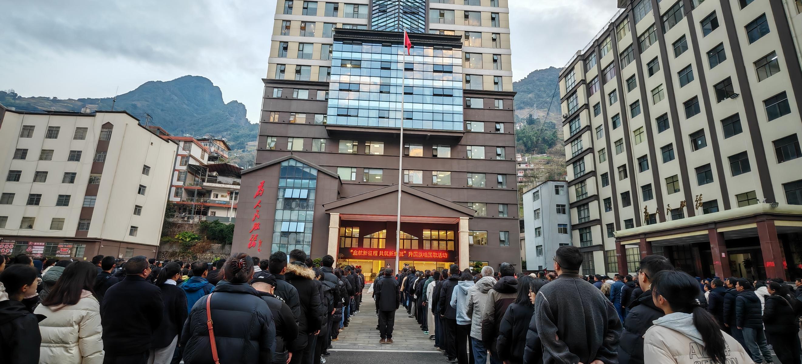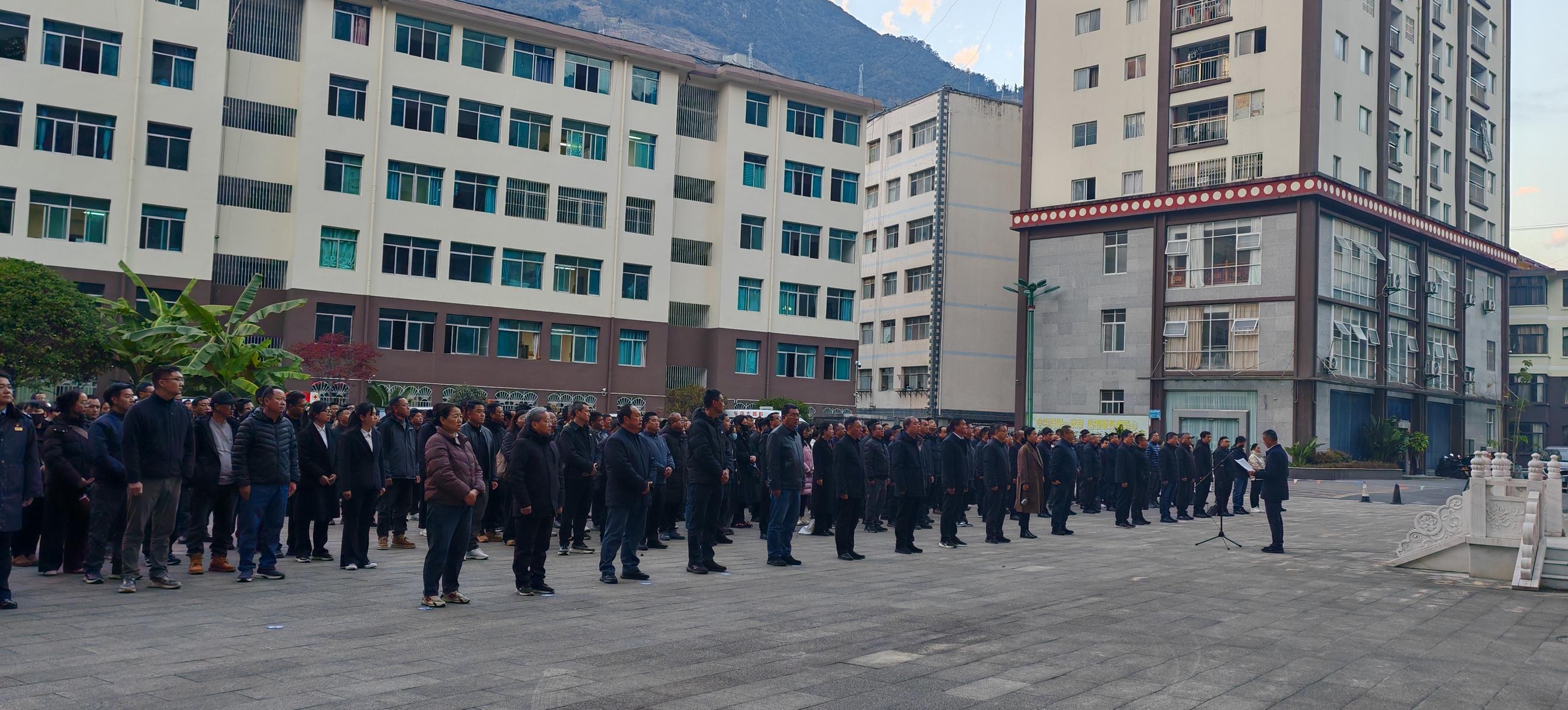 1月4日,福贡县开展“启航新征程共筑新成就”升国旗活动。县委书记明春鹏参加活动,县委副书记、县长李胜兵主持活动并讲话。