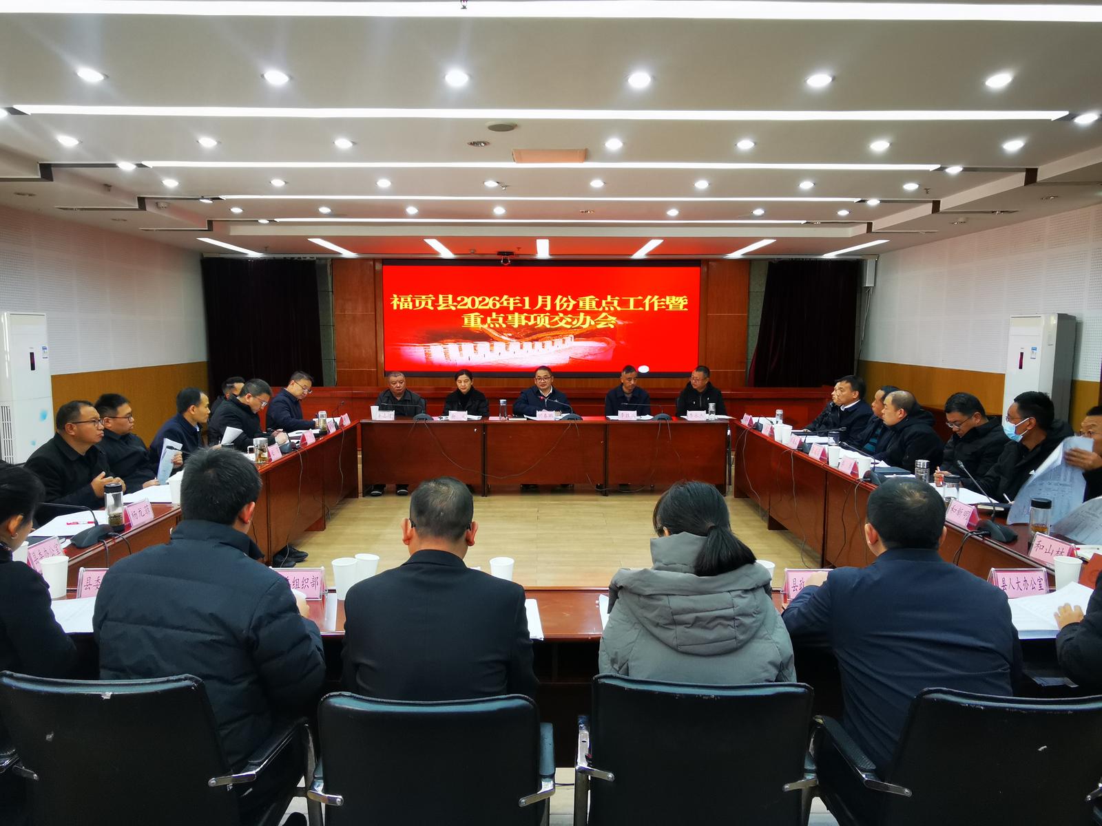 会议明确了县委2026年1月份重点工作:一是持续深入学习贯彻习近平新时代中国特色社会主义思想和习近平总书记考察云南重要讲话精神,认真学习贯彻党的二十届四中全会精神和习近平总书记近期重要讲话、重要指示批示精神。二是持续认真学习宣传贯彻省委十一届九次全会精神,筹备召开县委十三届十二次全会和县两会。三是认真学习贯彻中央、省委、州委经济工作会议精神,筹备召开县委经济工作会议。加强全县经济运行分析调度,稳妥有序推进风险化债工作,特别是“拼经济、增收入、惠民生、保安全”四项工作,认真抓好“十五五”时期各项工作,确保开好局、起好步。四是扎实推动落实中央八项规定精神学常态化长效化,持续认真学习贯彻《党政机关厉行节约反对浪费条例》,整治违规吃喝和违规饮酒。五是认真贯彻落实省委书记王宁、省长王予波怒江调研系列指示要求。六是扎实推进“清廉云南”“清廉怒江”“清廉福贡”建设系列行动及群众身边不正之风和腐败问题集中整治工作。七是做好全面推进乡村振兴各项工作。统筹做好粮食安全和耕地保护工作,牢牢守住耕地保护红线和粮食安全底线。八是做好省、州两会期间信访维稳工作,抓好矛盾纠纷排查和化解工作,办理好人民群众信访事项,重点做好进京访人员的稳控工作。九是持续做好中央环保督察群众投诉举报件及反馈问题整改工作。持续抓好中央、省委巡视反馈问题、巡视交办信访件、立行立改涉及福贡问题整改工作。十是认真贯彻落实近期党中央、国务院和省委、省政府关于安全生产、应急管理和防灾减灾工作相关要求,扎实做好森林防火、安全生产、矛盾纠纷排查化解、校园安全、食品安全、预防未成年人受侵害、舆情防控等工作,确保社会大局稳定。十一是全力推动农文旅户外产业发展。加快推动石月亮甘摩朵农文旅融合、泽马河农文旅融合示范区和知子罗咖啡庄园项目建设工作。十二是持续做好村(社区)“两委”换届各项工作。十三是统筹开展好全县2025年度综合考核相关工作。十四是筹备做好2026年春节慰问方案及各项相关工作。十五是筹备召开县委常委班子2025年度专题民主生活会。