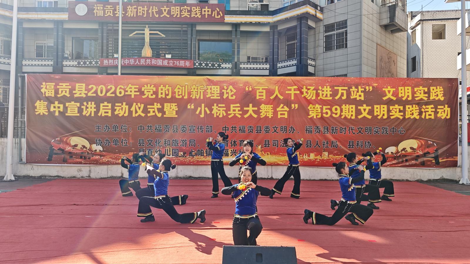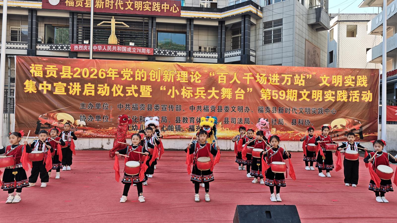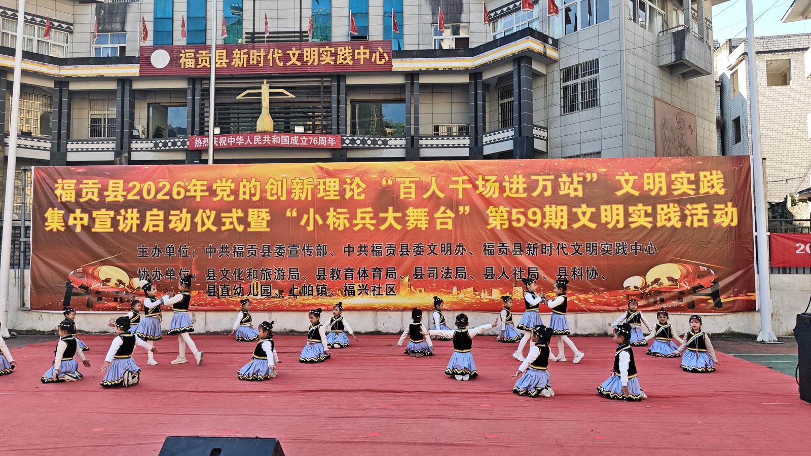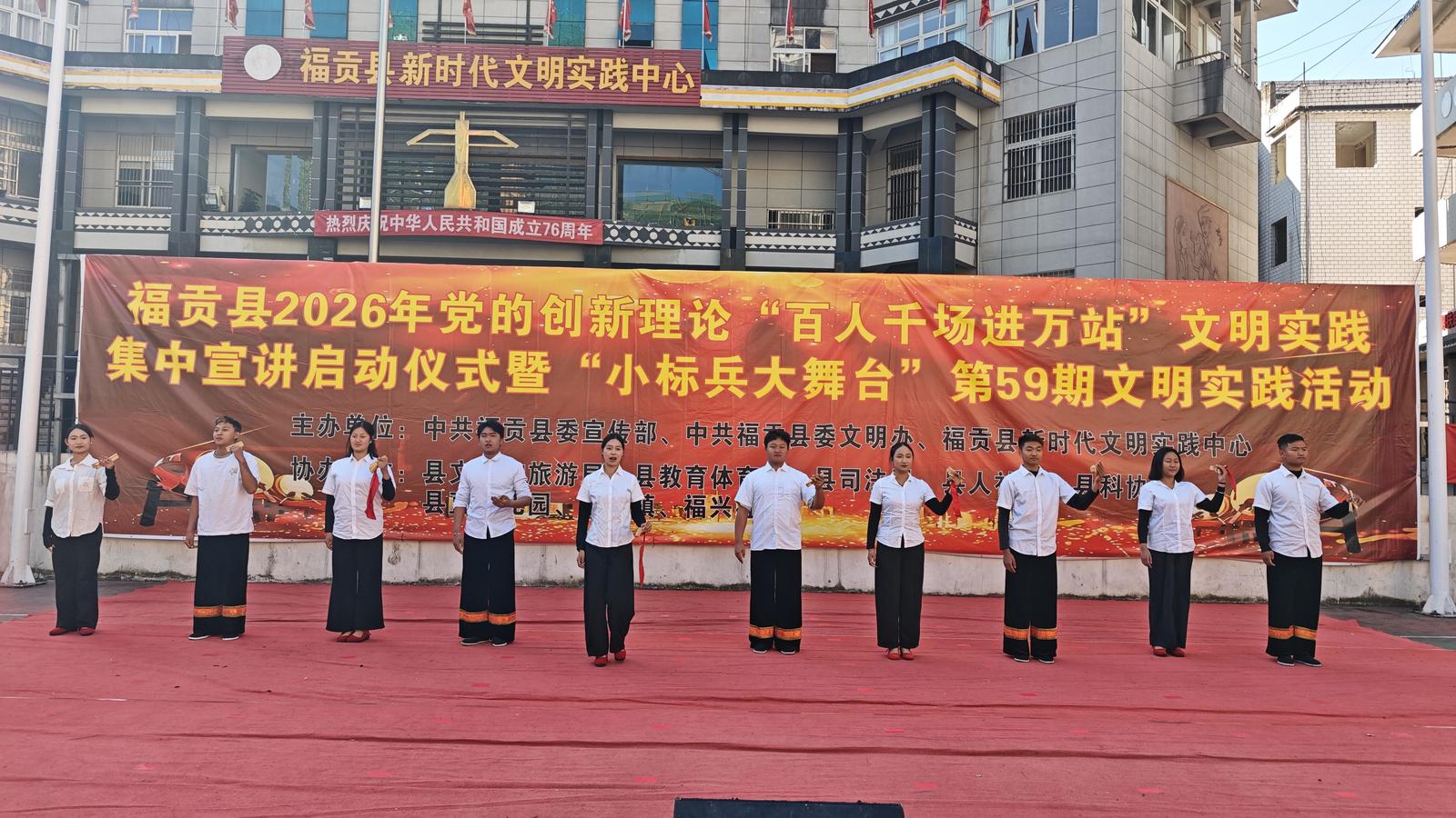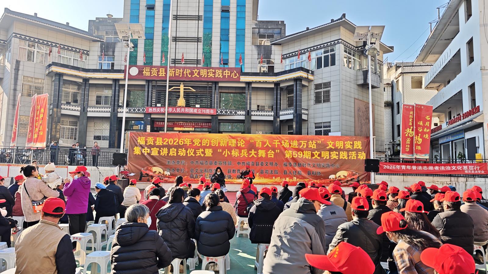 1月8日,福贡县举办2026年党的创新理论“百人千场进万站”文明实践集中宣讲启动仪式暨“小标兵大舞台”第59期文明实践活动。县委常委、县委宣传部部长李成荣出席仪式并作讲话,县委常委、上帕镇党委书记李尚文就学习贯彻党的二十届四中全会精神作专题宣讲。